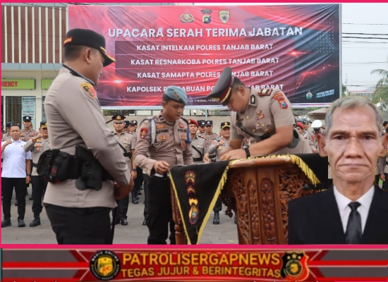 PATROLISERGAPNEWS.ID – TUNGKAL – Kepolisian Resor (Polres Tanjung Jabung Barat/Tanjab Barat) kembali melaksanakan upacara Serah Terima Jabatan (Sertijab) bagi empat pejabat utama di lingkungan kerjanya. Upacara yang dipimpin langsung oleh Kapolres Tanjab Barat AKBP Agung Basuki, S.I.K., M.M., berlangsung khidmat di Halaman Mapolres pada Senin pagi, 13 Oktober 2025.